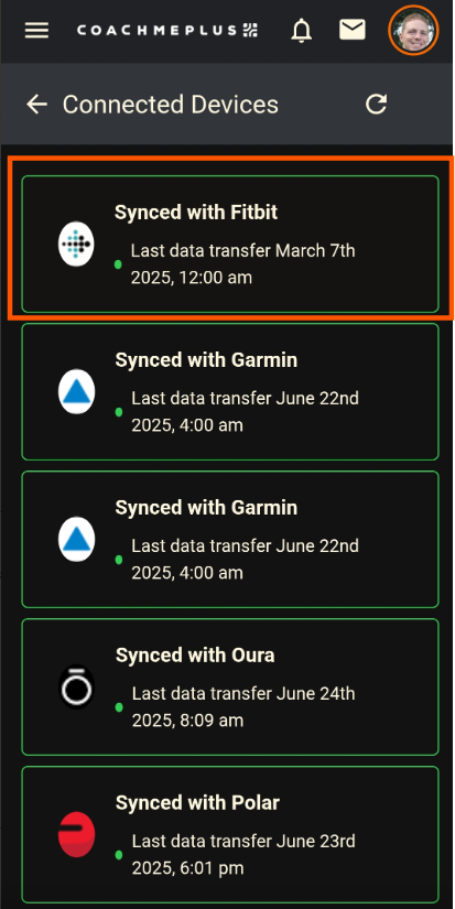 - Log in to the CoachMePlus app and Select your account icon in the top right