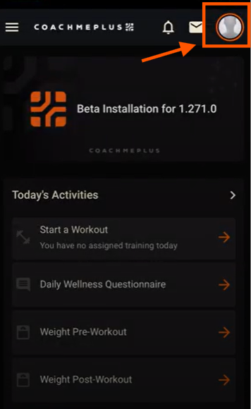 Log in to the CoachMePlus app and Select your account icon in the top right