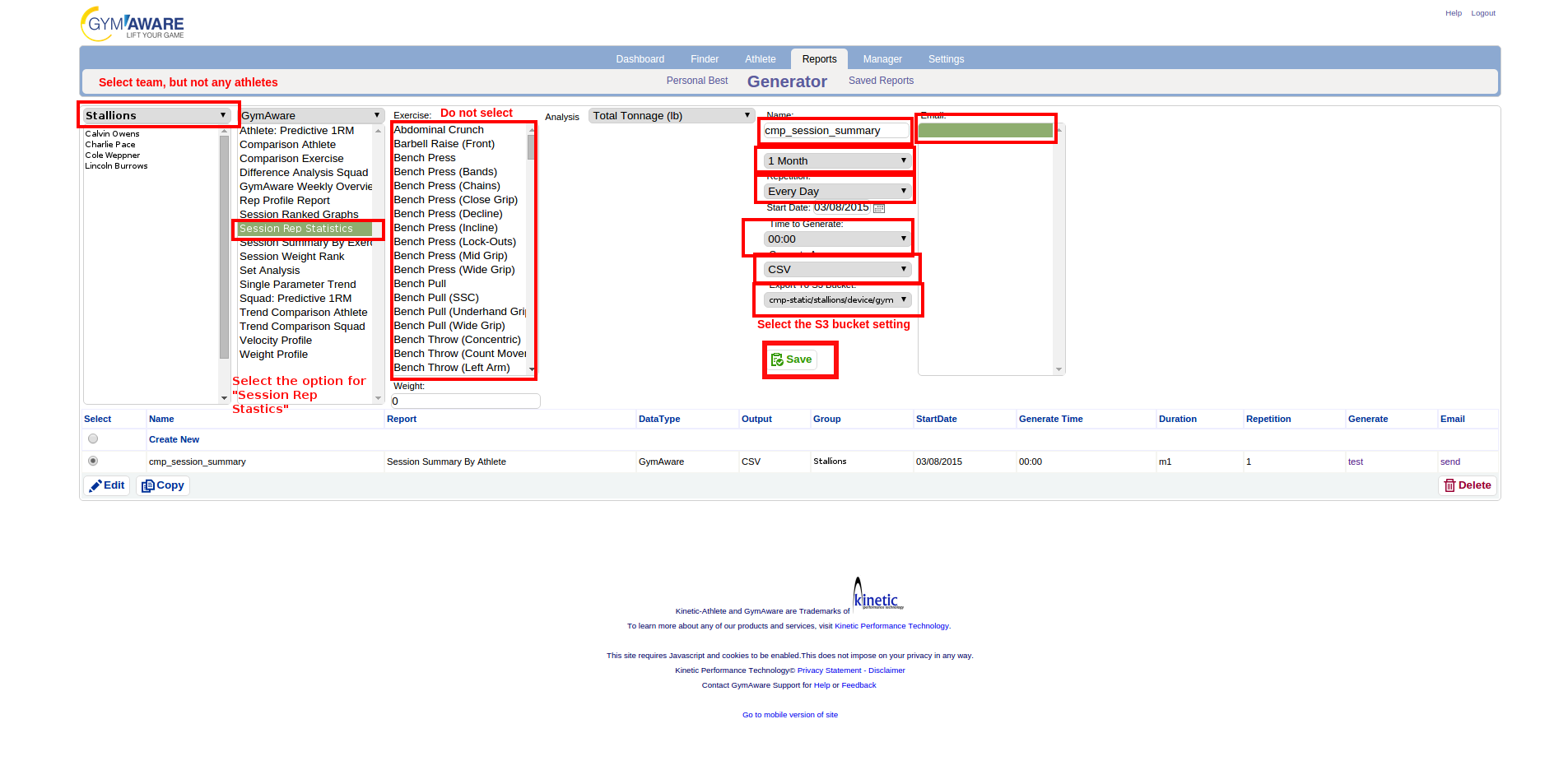 - Select the "Bucket Name" given by your Account Executive for Export to S3 Bucket. (e.g. cmp-static/stallions/device/device.gymaware/inbox)